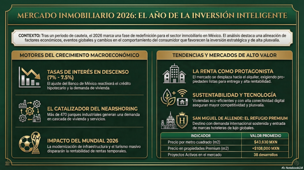 El mercado inmobiliario mexicano en 2026 no premia la improvisación. Premia la claridad, la paciencia y la capacidad de leer el contexto con profundidad. Las condiciones están dadas: tasas en descenso, demanda estructural creciente, un país que se consolida como potencia receptora de inversión y un evento mundial que amplifica las oportunidades.